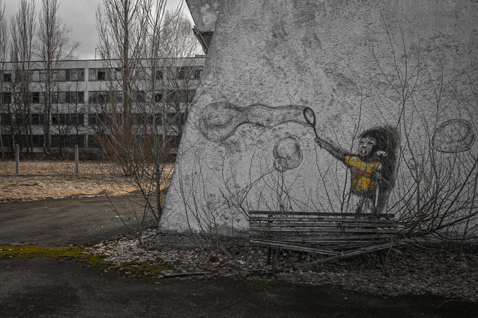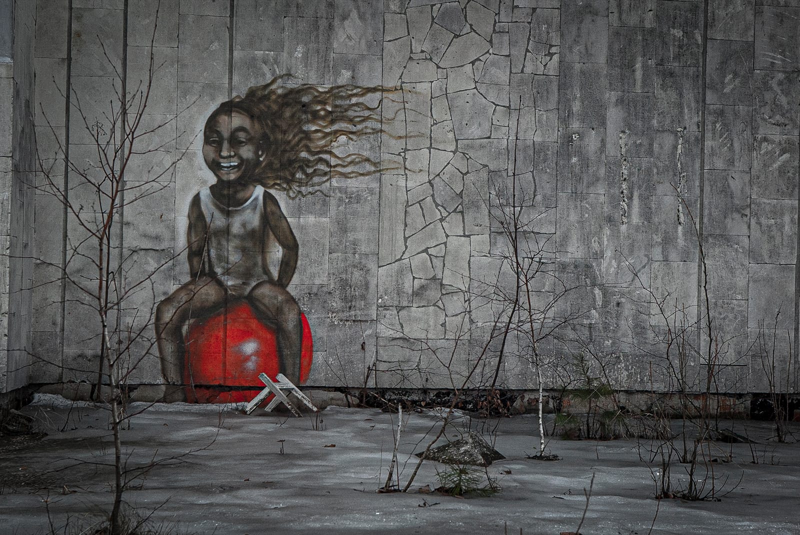 People don't live here because of radiation. However, the presence of painted human figures somehow encourages us to think that they are or were here, or perhaps only their souls remain, appearing on the walls of the ruined city, trying to communicate their thoughts and feelings.