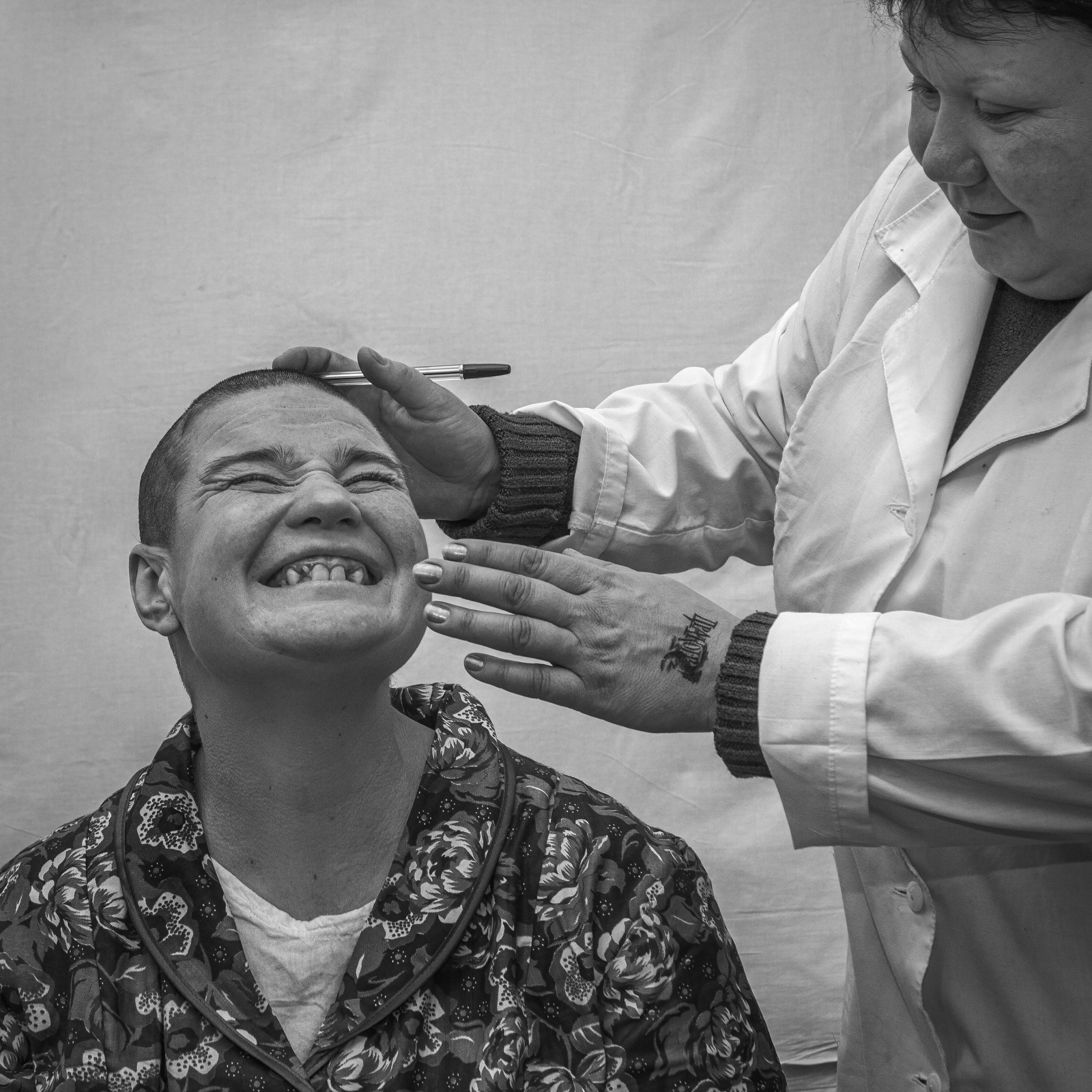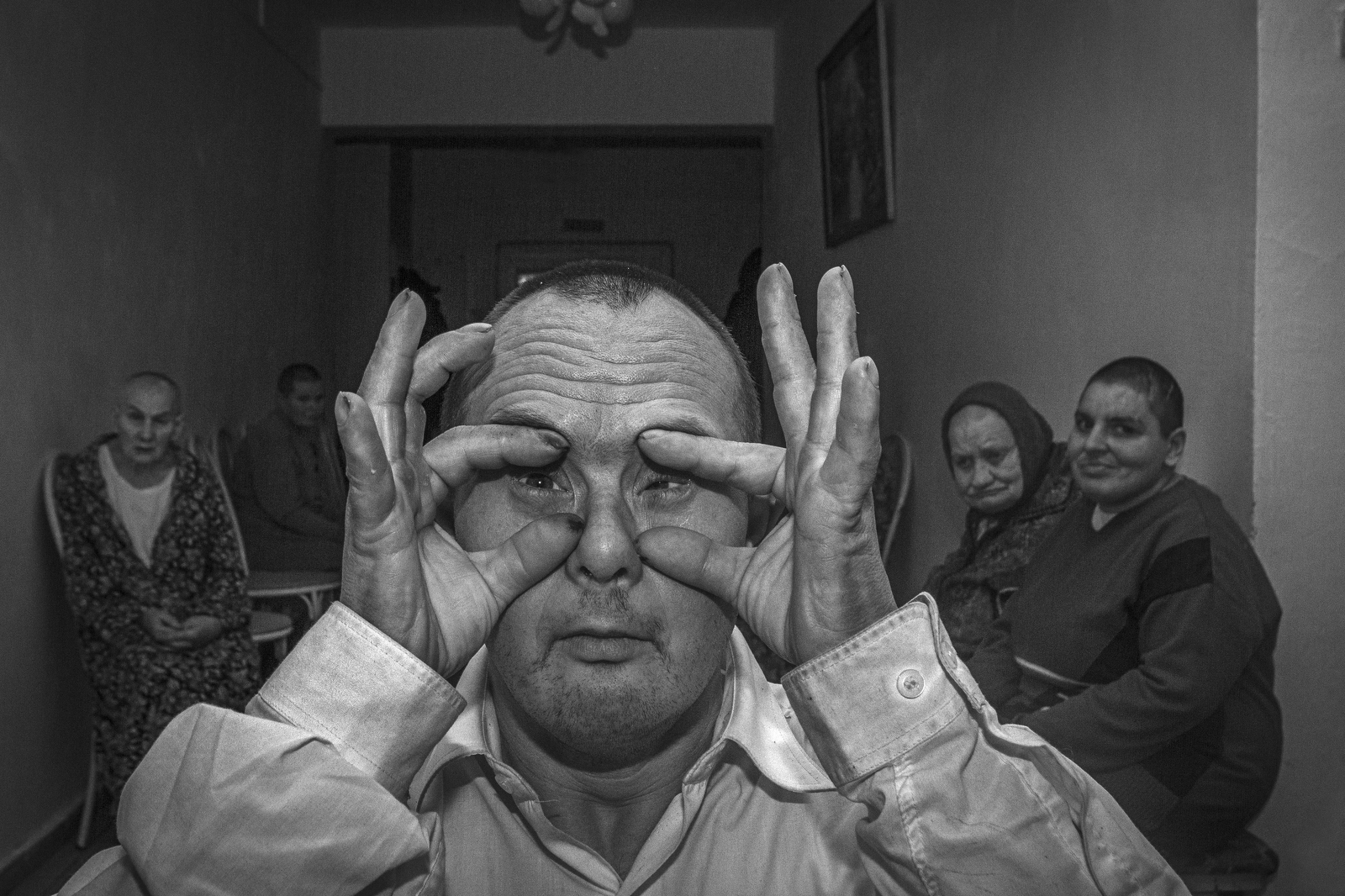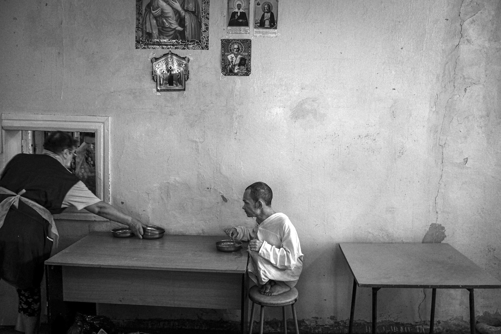 Oleg Klimov spent a total of three months in a residential psychoneurological institution (or, in Russian, a PNI). During that time, he took about 500 portraits of the PNI’s residents and learned about what life is like in some of Russia’s most closed-off, stigmatized institutions. Klimov stopped using knives and forks (only spoons were allowed in the PNI), saw a Russian Orthodox iconostasis stationed in a cafeteria, and made purchases from a store where no one ever uses cash (residents are never given their pensions in hand). While getting to know his neighbors and teaching them mathematics and photography, Klimov became convinced that the environment and the lifestyle available to any given person affects them at least as much as the individual traits they were born with.